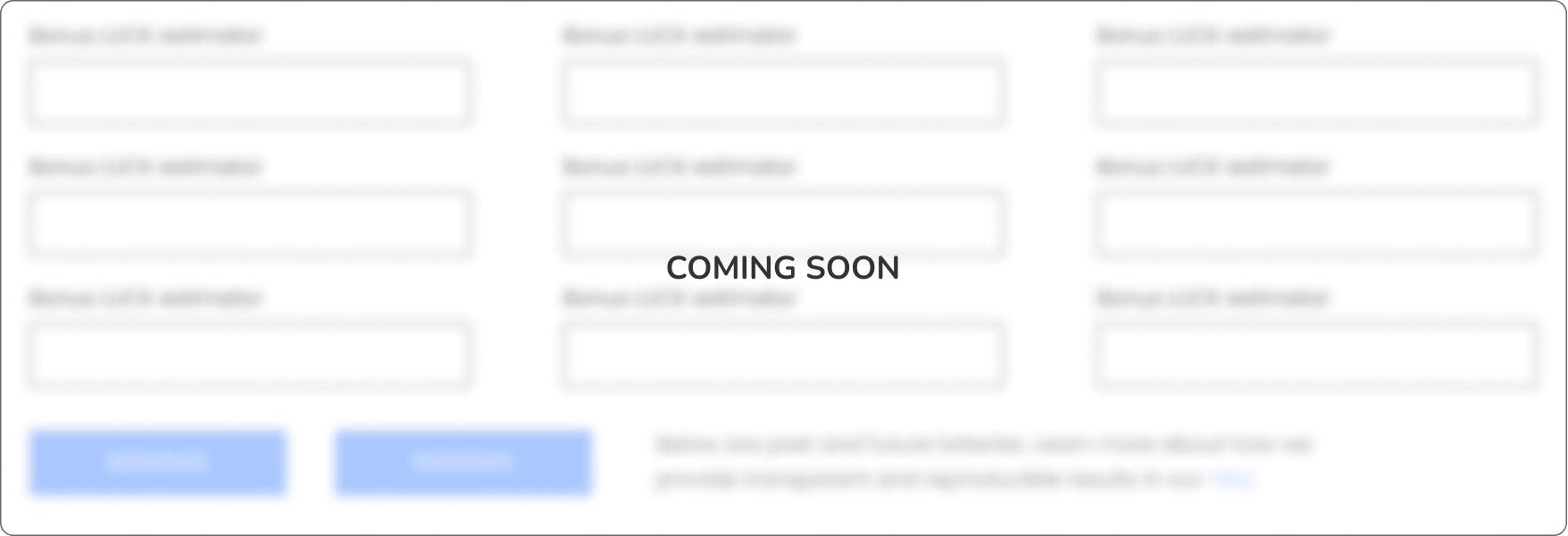 Below are some tools and calculators you can use to estimate your Base Luck / Monthly Entries, Bonus LUCK, and Potential Odds of Winning. We've even built a tool for you to check our lottery results and ensure they're provably fair!
